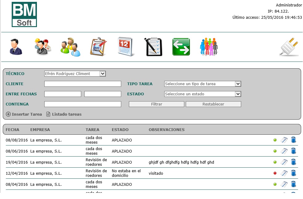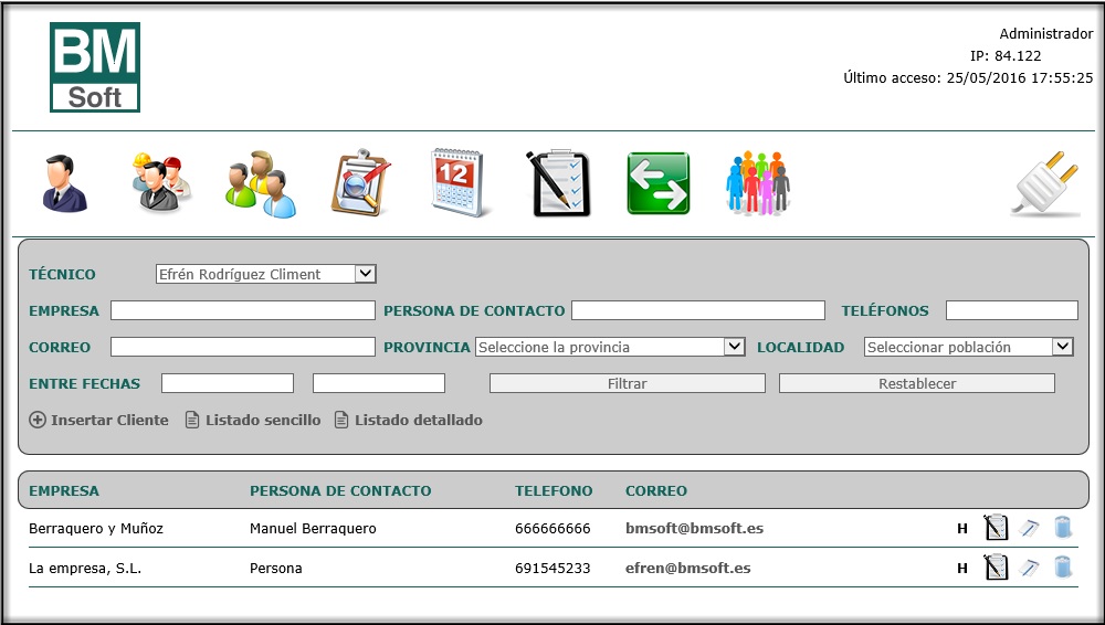 Pantallas de BMnet-planificador